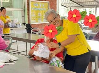 การบริจาคให้การช่วยเหลือ กลุ่มเปราะบางผู้สูงอายุติดบ้าน ติดเตียง คนพิการที่ยากจน ในทุกสัปดาห์ที่ 2 ของเดือน ๆ ละ 1 ครั้ง ๆ ละ 15 - 20 ราย โดยการจัดซื้อแพมเพริสห่อ ใหญ่ 30 ชิ้น 2 ห่อ และนมพร้อมดื่ม 1 โหลต่อผู้ป่วย 1 ราย บางรายทั้งพิการและยากจนจัดซื้อนมพร้อมดื่ม 1 หีบใหญ่ ไข่ไก่ 2 แผง และโจ๊ก 3 โหล ต่อ 1 ราย ผ่านแกนนำ ที่เป็นผู้เสนอรายชื่อขอรับการช่วยเหลือ และส่งต่อญาติในครอบครัวผู้ป่วยโดยตรง