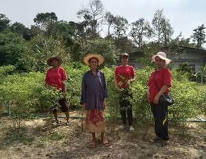 นางเชื้อเล่าให้ฟังด้วยรอยยิ้มอันสดใสถึงความรู้สึกดีใจที่ได้รับการช่วยเหลือและการสนับสนุน ทั้งข้าวของเครื่องใช้ต่าง ๆ รวมถึงการส่งเสริมอาชีพด้านการสานตระกร้าและการเกษตร ซึ่งทำให้เธอรู้สึกประทับใจเป็นอย่างยิ่ง เพราะเธอมีใจรักการทำเกษตรเป็นทุนเดิม ประกอบกับมีผู้เชี่ยวชาญเข้ามาให้คำแนะนำและมอบเมล็ดพันธุ์สำหรับการเพาะปลูก ตอนนี้เธอได้กลับเข้าสวนอีกครั้ง เริ่มปลูกพืชผักหลากหลาย เช่น พริก มะเขือยาว มะนาว โดยแบ่งส่วนหนึ่งไว้ใช้ในครัวเรือน อีกส่วนหนึ่งนำไปขาย โดยให้เพื่อนบ้าน อสม. นำไปขายผ่านกลุ่มและในตลาดของชุมชน เพื่อเป็นรายได้เสริม นอกเหนือจากเงินสนับสนุนผู้พิการและเงินสูงอายุ