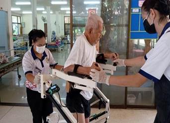 การฝึกเดิน การทำกายภาพบำบัด โดยมีนักศึกษาจากสถาบันการศึกษามาฝึกงานและช่วยใน ศพส.