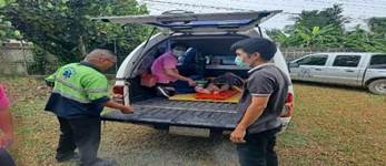 นายยอดปรีชา หาวุฒิ ทีมเทศบาลป่าตันนาครัวเคลื่อนย้ายอย่างระมัดระวัง