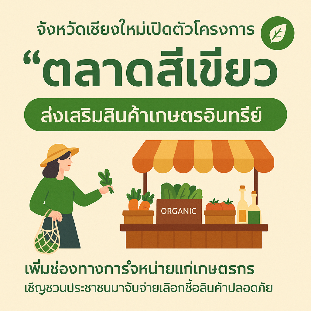 สำนักงานพาณิชย์จังหวัดเชียงใหม่ จัดกิจกรรม ตลาดสีเขียว เพื่อส่งเสริมสินค้าเกษตรอินทรีย์และสินค้าชุมชน เพิ่มช่องทางการจำหน่ายแก่เกษตรกร พร้อมเชิญชวนประชาชนมาจับจ่ายเลือกซื้อสินค้าปลอดภัย