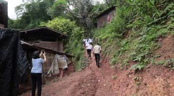 สองพี่น้องมีสีหน้าสดใสกว่าวันที่ไปที่ว่าการอำเภอบ่อเกลืออย่างเห็นได้ชัด นั่งรอทีมพวกเราอยู่ใต้ถุนบ้านไม้เก่าตั้งอยู่บนเชิงเขา ทางขึ้นบ้านแคบ ชัน ชื้นและค่อนข้างลื่น ต้องไต่ขึ้นไปอย่างระมัดระวัง สำหรับทีมงานบางคนขออนุญาตรออยู่ด้านล่างไม่กล้าเสี่ยงขึ้นไปปฏิบัติงานในบ้านของนางปิม อักขระ